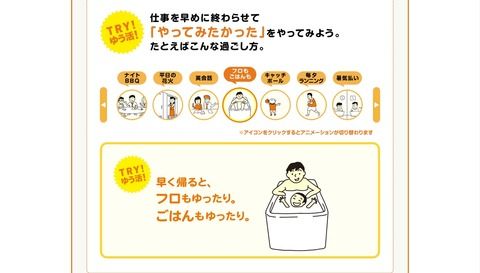 政府「ゆう活で平日諦めてたことをしよう!ゆったりフロとかごはんとか」←普段それもムリな社会って… 2015年07月14日 カテゴリ:人生 mixiチェック 1: 栓抜き攻撃(庭)@\(^o^)/ 2015/07/08(水) 19:16:09.32 ID:JNjoQ8bT0.net BE:545512288-PLT(15444) ポイント特典 sssp://img.2ch.sc/ico/pc3.gif 【政府広報】 ゆう活 - はじめよう!夕方を楽しく活かす働き方 仕事を早めにはじめて、早めに終える。そして、夕方からはオフを楽しむ。 それが“ゆう活”という新しい働き方。 「平日は無理・・・」と諦めていたことが、働き方次第でできるようになるかもしれません。 日が長くなるこの夏、あなたの職場でも“ゆう活”してみませんか? http://www.gov-online.go.jp/tokusyu/u-katsu/ http://i.imgur.com/mZ2lLTX.jpg 2: ヒップアタック(dion軍)@\(^o^)/ 2015/07/08(水) 19:17:09.42 ID:SgJGXelr0.net ご、午前様活… 3: ナガタロックII(dion軍)@\(^o^)/ 2015/07/08(水) 19:17:12.72 ID:gvY2A4oA0.net 朝が辛いです(小並感) 【政府「ゆう活で平日諦めてたことをしよう!ゆったりフロとかごはんとか」←普段それもムリな社会って…】の続きを読む